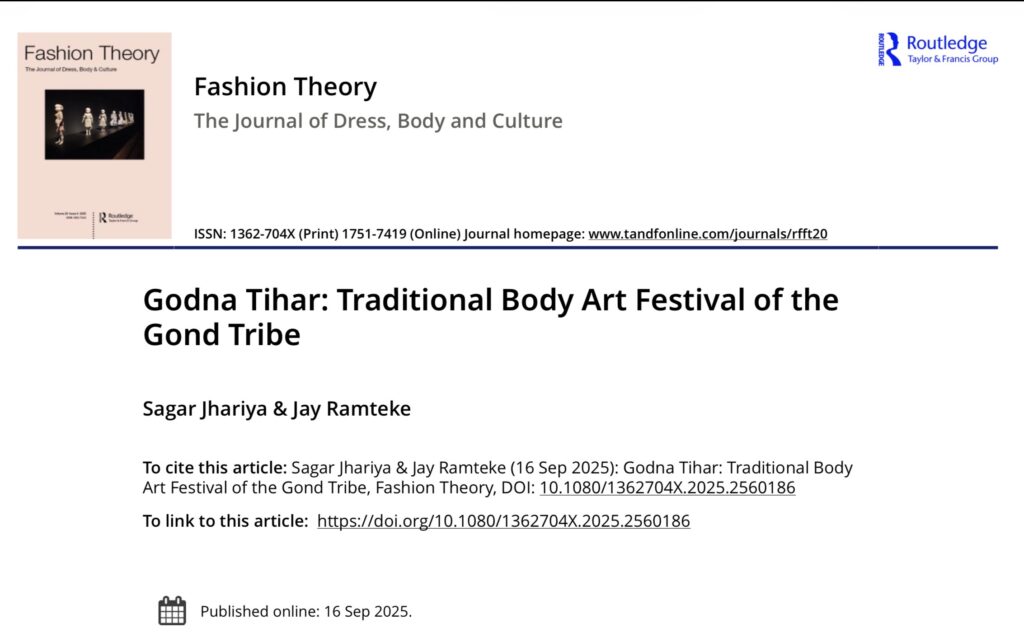 This work — led by Sagar Jhariya as first author, with contributions from our team — explores the cultural, aesthetic, and social significance of Godna, the traditional tattooing practice of Central India. The paper engages with Godna not just as body art, but as a lived practice of identity, memory, healing, and belonging. It reflects on how the Godna Festival has become a space where these meanings are celebrated, negotiated, and carried forward across generations.